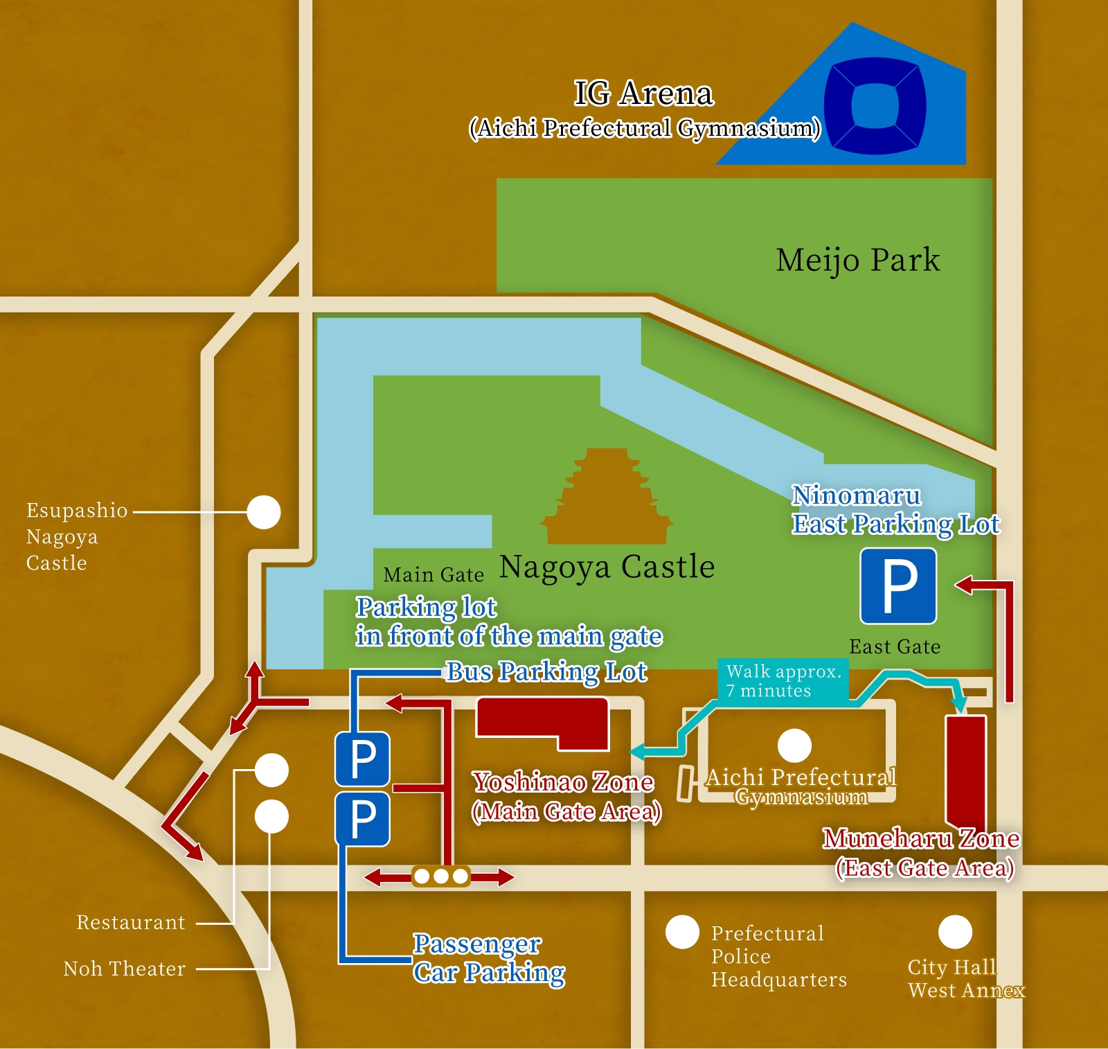 Nearest Parking (Paid Parking):Nagoya Castle Main Gate Parking LotMeijo Park Ninomaru East Parking Lot