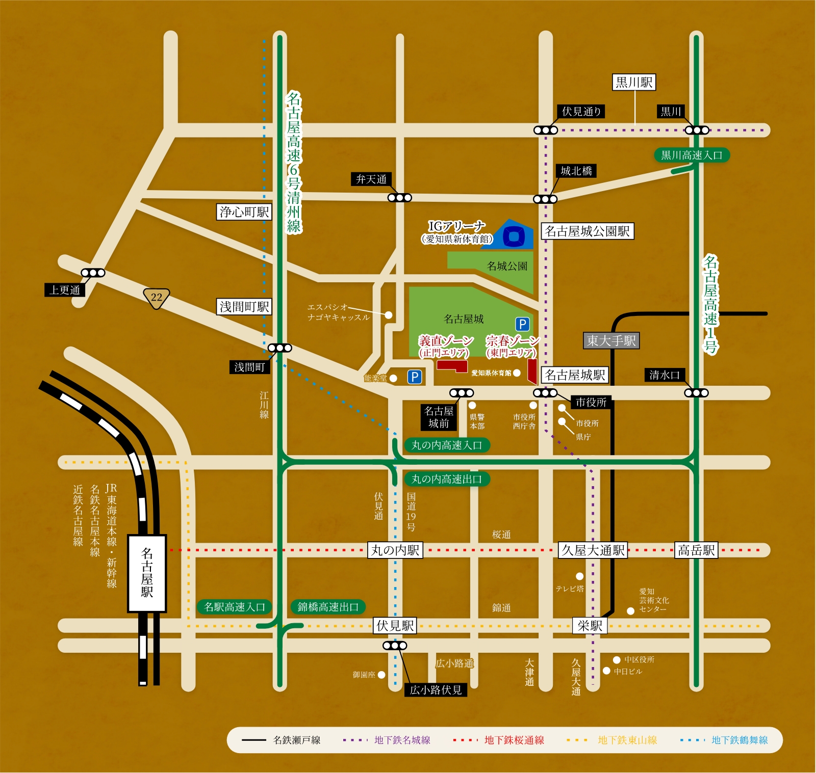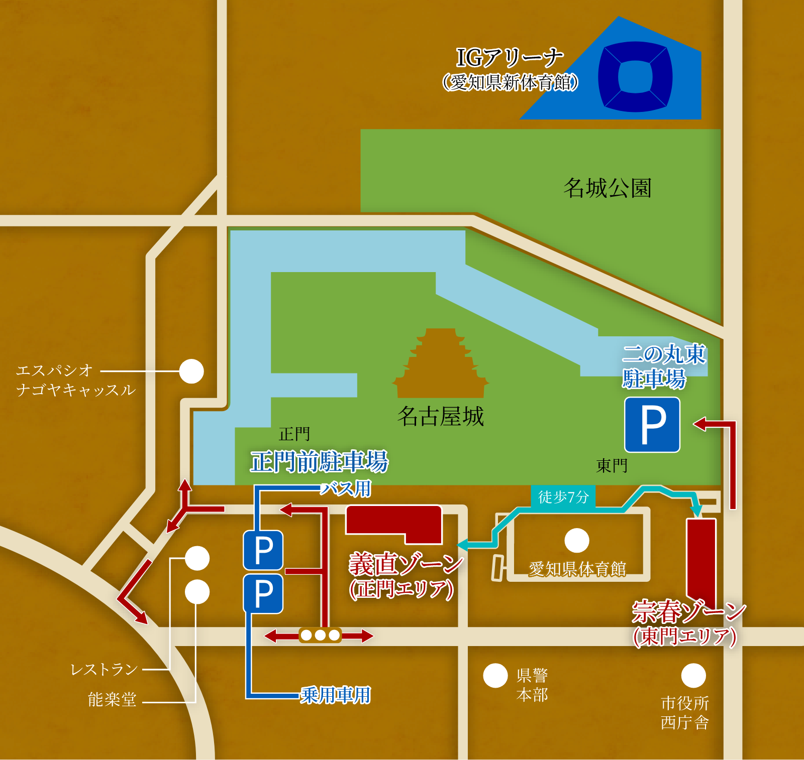 義直ゾーン(正門エリア)宗春ゾーン(東門エリア)