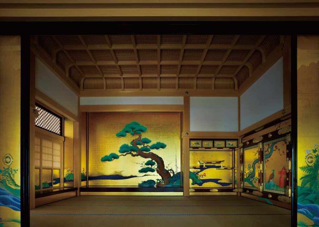 狩野探幽を筆頭に狩野派の絵師たちが手がけた障壁画は、部屋の格式や用途によって異なる意匠で描かれたことが特徴です。