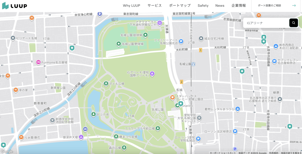 IGアリーナ周辺から一番近いLUUPのサイクルポートは「名城公園tonarino」です。