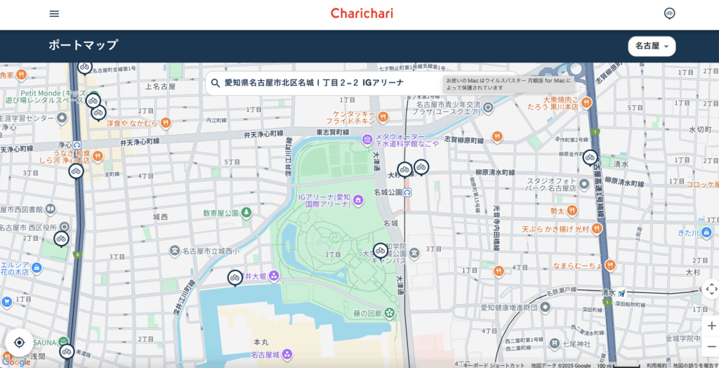 実はIGアリーナ周辺には、複数のシェアサイクルポートがあるので、イベント開始までに効率良く名古屋観光を楽しめます。