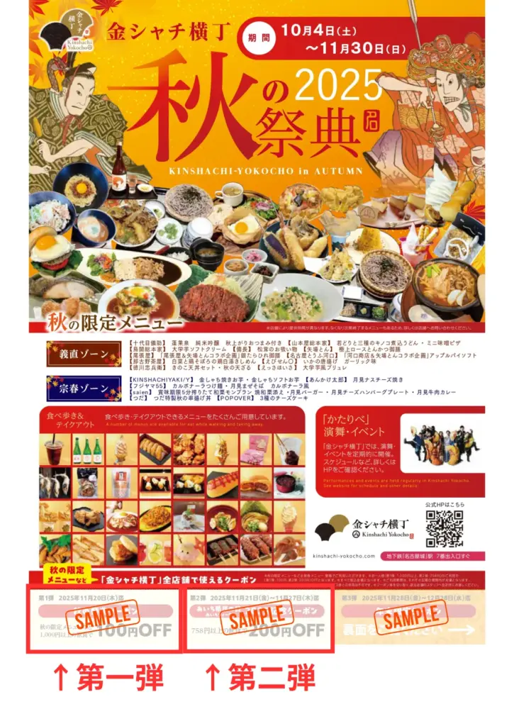 金シャチ横丁では秋の祭典期間中全店舗で使える特別クーポンを提供いたします。
