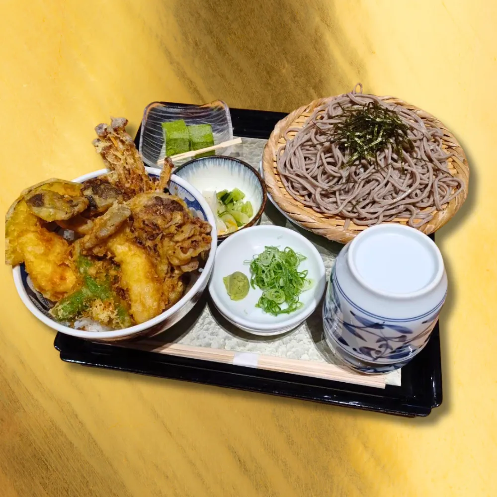 きのこ天丼セットキノコ5種(山茶茸、舞茸、椎茸、エリンギ、平茸など)野菜2種、かしわ