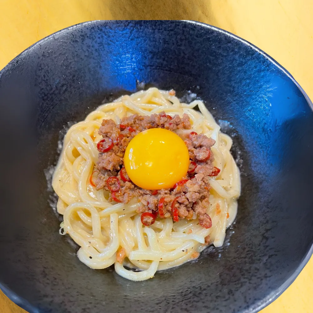 月見まぜそば カルボナーラ風