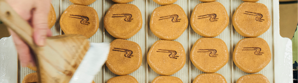 饅頭を作る御菓子所から始まり、やがて尾張藩に和菓子を納める御用菓子司として確立していきました。暖簾や包装紙のロゴには、尾張藩の第二代藩主である徳川光友公から贈られた店看板のデザインが用いられており、名古屋らしさを感じられます。