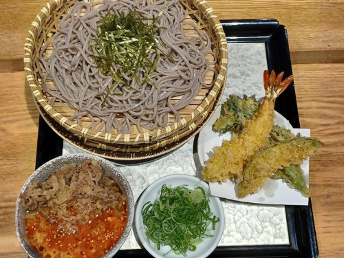尾張蕎麦だけでなく、味噌天丼や天むすも楽しみたい方には、「金鯱セット」の注文がおすすめです。名古屋らしいご飯メニューと、蕎麦を自由に組み合わせて選べるため、ボリュームも満足できる内容になっています。