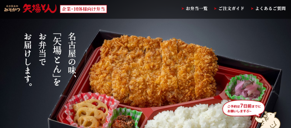 企業の会議やセミナー、イベントなどで矢場とんのお弁当をまとめて注文したい場合は、企業・団体向けの専用注文サービスを利用できます。
