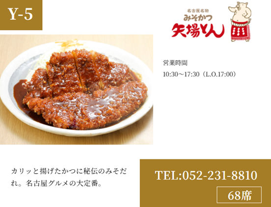 ・名古屋エリア(矢場町本店・栄セントライズ店・名古屋城金シャチ横丁店・栄ラシック店・名古屋駅エスカ店・昔の矢場とん・イオンモールナゴヤドーム前店)